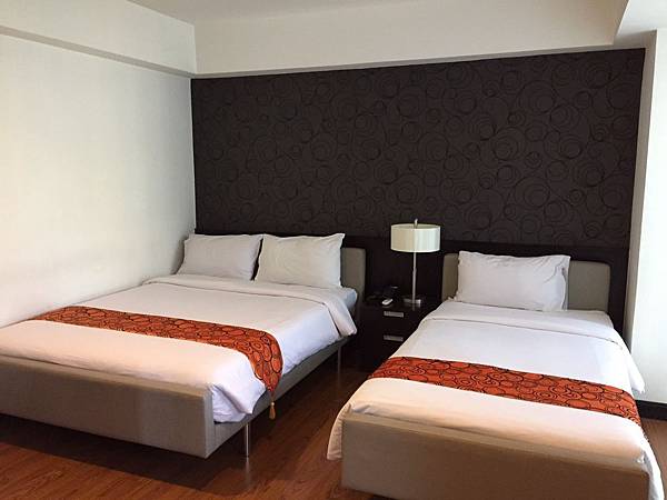 因為有要求要兩張床,結果分配到一大床一小床,挺開心的。