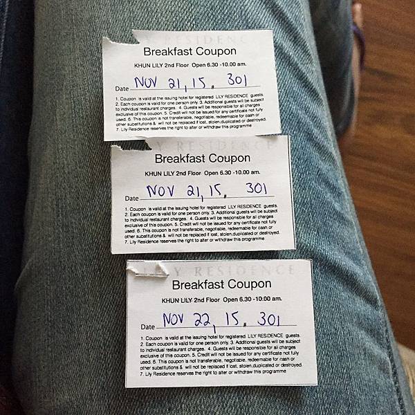 Lily Residence 的早餐券,要去吃早餐要帶這張。