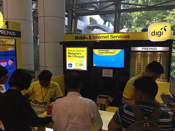 因為抵達時間是下午,每一家電信櫃檯都有服務人員,行前跟馬來西亞的朋友聊天,她推薦我們試試看Digi的sim卡,說是Digi的網路比較穩定。當然我在網路上也查了很多資料,畢竟雖然出差還是要跟台灣連絡,非常需要網路阿~~~不過因為馬來西亞不像泰國有推出七天悠遊電話卡,所以只能一家一家比價問詳細的方案內容,上次用Hotlink覺得櫃檯人員講的跟我收到簡訊提供的內容不合覺得不舒服,所以這次就照著朋友的推薦選了Digi。