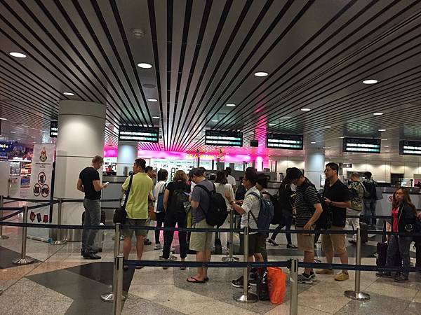 因為這次出國被朋友交代一定要提早到,說是因為恐怖攻擊案件太多最好提早到避免有突發狀況,所以搭9:40的飛機我七點到機場報到,再加上不知道是不是因為禮拜一大家都要回國,每次禮拜一都大排長龍,二話不說直接先排通關,不過我看第二航廈這次通關櫃台開滿所以雖然人多但是排隊時間不長很快就輪到了。順利登機後直接睡死了因為五點就起床了,到了馬來西亞還要到展場看攤位什麼的就趕快先補眠了。