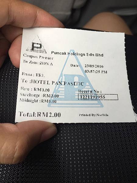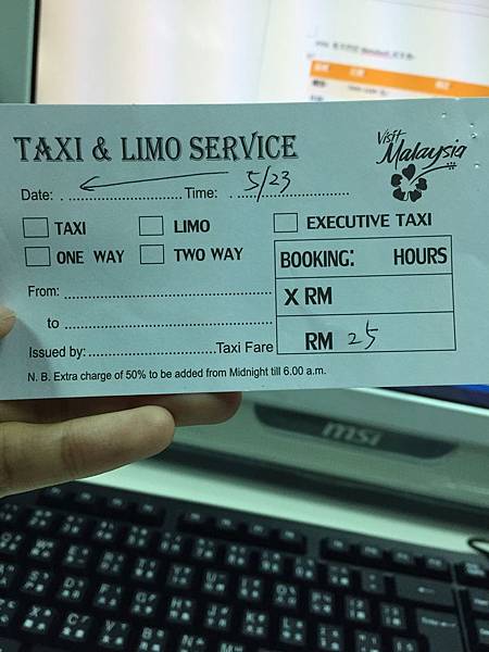搭完KILA Ekspres後到了大廳,就往一號出口旁的櫃檯說你要搭by meter的計程車,你會先付2RM的booking費用順便提供你的目的地,再到外面等待安排上車,上車之後交給司機看這張紙後他會還你,之後到達目的地會再給你一張收據,讓你填價格或是幫你寫好,我的司機是讓我自己填。當然你也可以再搭市區內的地鐵前往飯店,不過我的行李太多要到飯店要還要轉車,所以到了中央車站就選擇搭計程車。