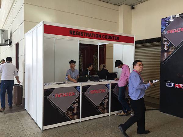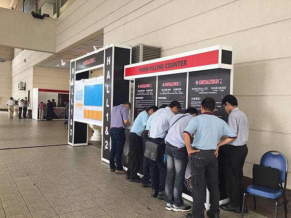 主建築的換證服務區,可以看到媒體夥伴很多,官方媒體則是新加坡雜誌Asia Pacific Metalworking Equipment News,贊助廠商是金豐沖床。