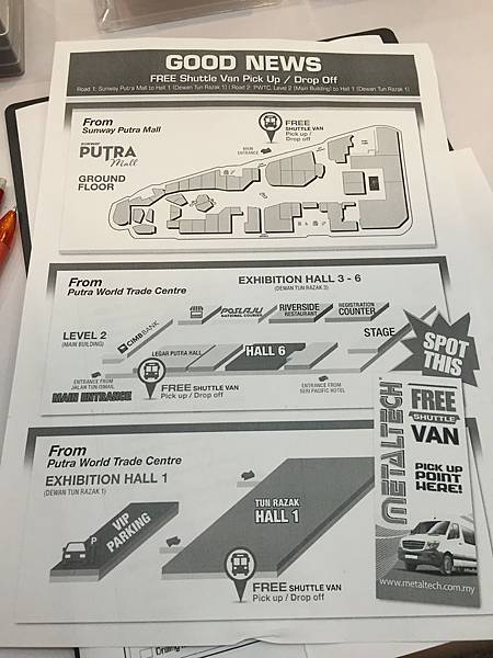 今年展主辦單位多了接駁車的服務,總共三個接駁點,Hall 1入口、主建築的入口、跟SUNWAY PUTRA的大門口。我真的有點搞不清楚主建築那個是幾樓阿~~好慚愧~~因為我一直待在Hall 1,反正就是換證區那樓外面就對了,我把它當成一樓好了.... 希望你們看的懂.....