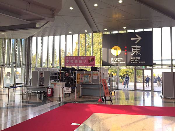 這個設計非常方便,可以一次了解全部的展會資料。經過這一區後會先看到一個行李寄放區,雖然展場有設置許多置物櫃,但是無法把大型行李放進去,所以提供行李箱的寄放區。