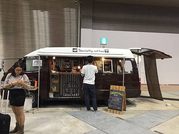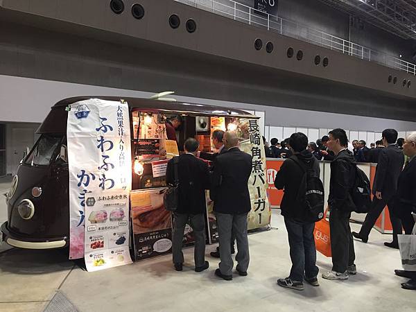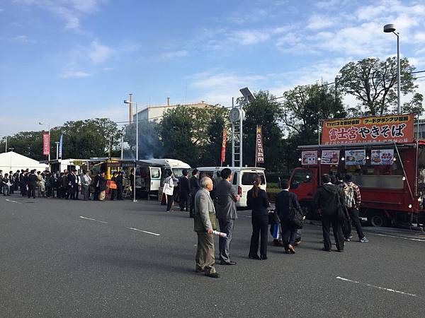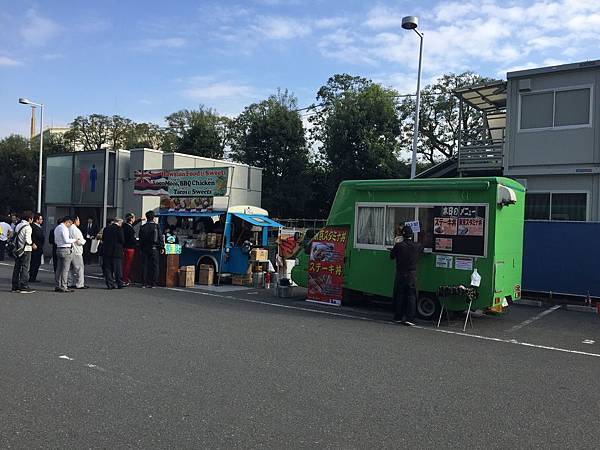 如果覺得展館裡面太多人或是想抽菸,可以到館外的空地,這邊也有設置座位區,請一些餐車來擺攤,想要吃都西的話選擇都非常的多,而且還可以使用餐券。