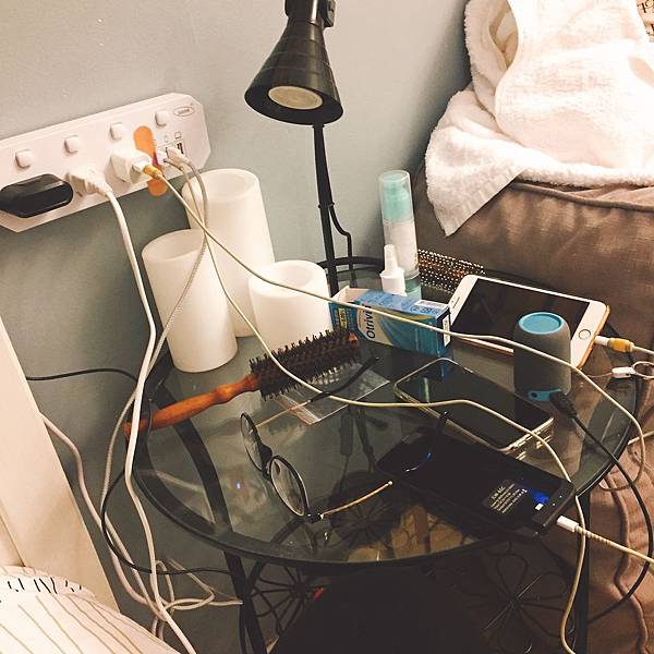 插座的before & after,因為插座上的藍色燈光晚上睡覺的時候我覺得會影響睡眠,所以就先用OK蹦貼起來。