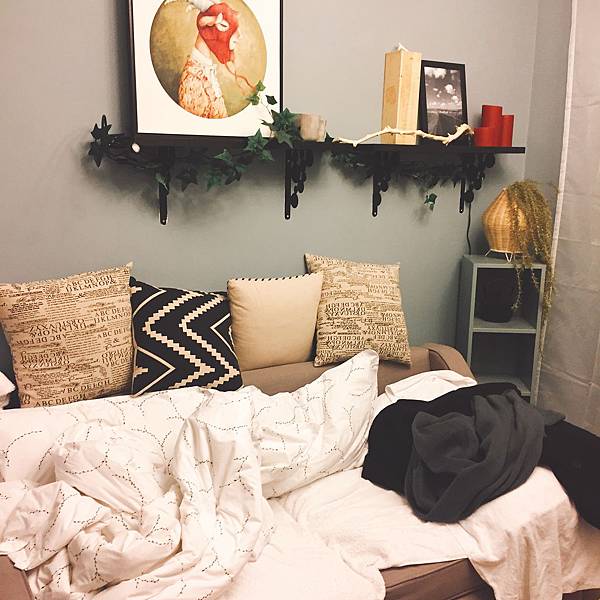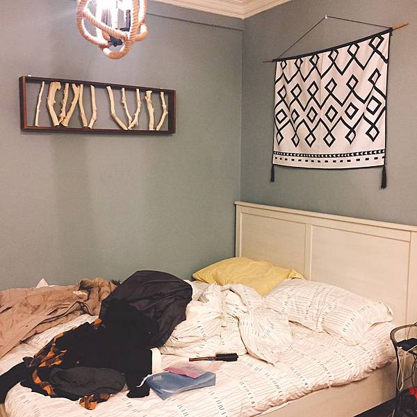 房間內的空間其實蠻大的,但如果把沙發床打開就超不多了,邊邊角角放行李箱大概就滿了,差不多就是兩張雙人床在放一個單人床的大小 (傢俱不動的話)。