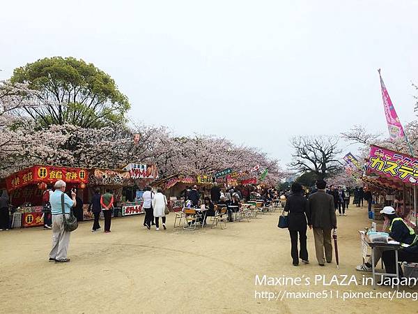 櫻花祭的攤販早上十點就已經開始營業了,各式各樣的小吃,這裡充斥的食物的香味,要注意祭典賣的食物會比較貴一些,大約是平常價格的二到三倍貴,畢竟一年就一次櫻花祭嘛! 我們沒有往攤販區裡面走,而是繞出去往舞鶴公園方向。