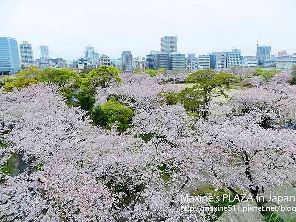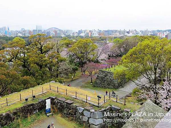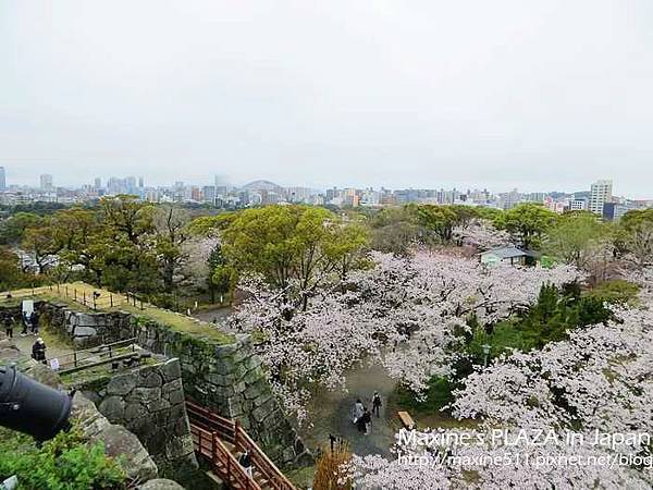 從天守台往下看可以看到壯觀的櫻花樹叢,在這邊可以360度眺望福岡市內景色。