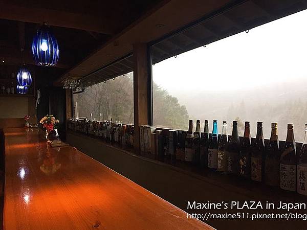 工作人員會請你在吧檯稍等,這邊晚上會變成酒吧,上午的話則是接待區,酒吧配上窗外的美景是這間溫泉旅館的看點之一。工作人員會先上一杯熱煎茶,跟你拿護照去影印,並請你填寫一張入住表格。我們從網路上訂房後,到日本才付住宿費,在check out的時候支付。