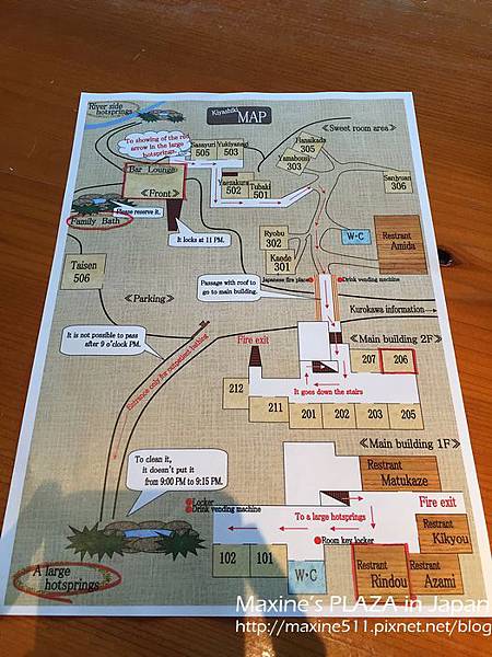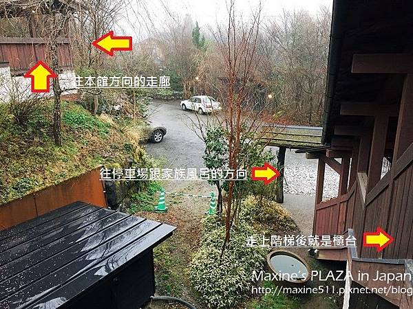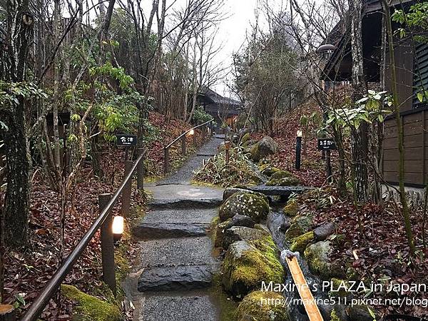 再看一次地圖,我們現在經過的是《Sweet room area》,房號是「3」跟「5」開頭的都是擁有私人露天泡湯池的房型,價格比較高,如果是一家人來玩就很適合住這種,或是想要有私人泡湯空間的情侶。