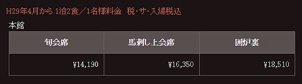 住在本館的旅客,住宿價格主要差在料理部份,想吃的比較高級,住宿價格就會比較高,我這次選擇的是《旬会席》,一個人14,190日幣,約台幣3900元。