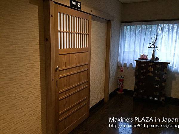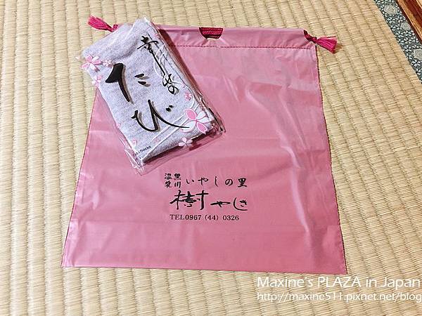 講解完基本動線後,工作人員會問你(1)用晚餐的時間,(2)泡家族風呂(家族泡湯池)的時間,家族風呂泡湯區在停車場旁邊,只提供給有住宿的旅客使用,後面會再介紹。選完時段後,工作人員會拿出三塊布給你選,藍色、粉紅色、芥末黃三種顏色,這是要讓你選浴衣的顏色喔!! 選完浴衣顏色後,入住手續就告一段落拉,工作人員會帶你到房間,並在途中一一介紹。離開入口後,要再換上室外脫鞋,女生穿紅色,男生穿藍色。