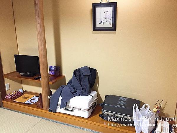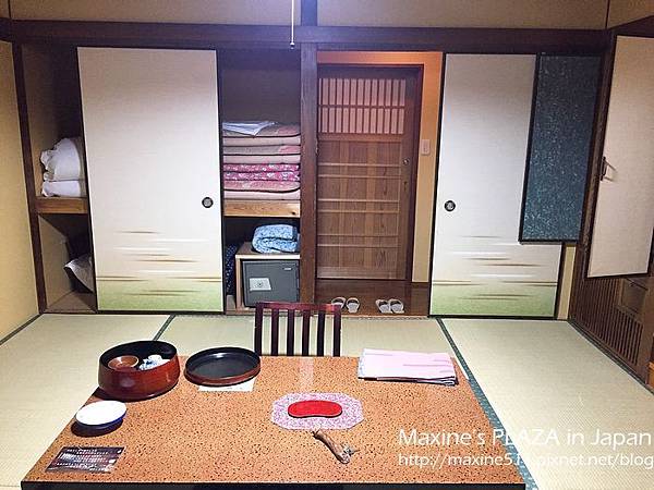 一進到房間後,浴衣會放在桌上,行李工作人員會放在左手邊。廁所在入口處左手邊,空間很小。