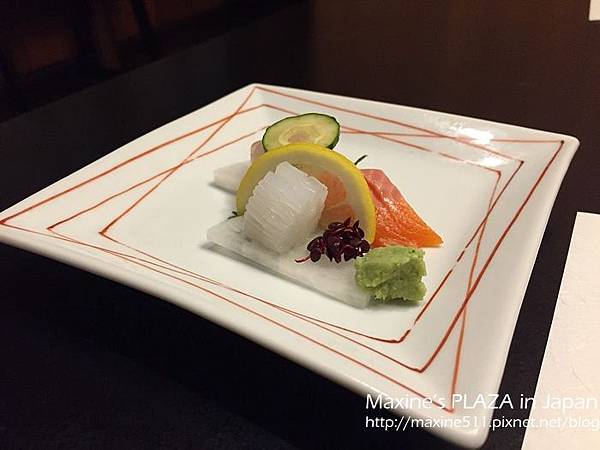 進到包廂後,前菜已經先上桌了! 入座後,會由一位工作人員專門負責一桌客人,服務我們的工作人員,也是隔天早餐服務我們的工作人員。順便提到,接送客人、處理入住手續的都是男性工作人員,客房服務跟用餐服務都是女性工作人員。工作人員會先自我介紹,然後再介紹今日餐點。