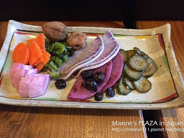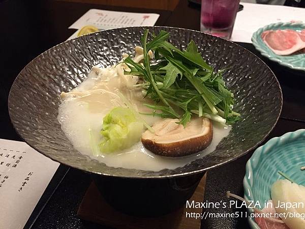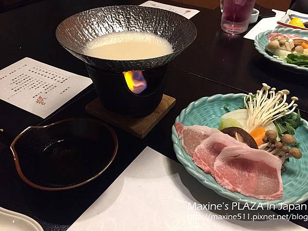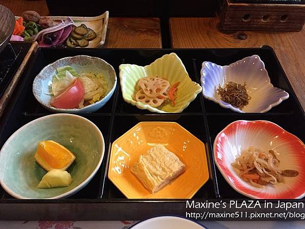 吃完烤牛肉後,火鍋也差不多滾了,這個時候工作人員會上白飯跟漬物,先幫忙盛一碗飯後,會在留一小桶飯給客人。日本的飯真的好好吃阿~~又香又軟,配上酸甜的漬物超下飯,而且漬物是旅館自己栽種醃製的。另外,工作人員也會上一壺熱茶。