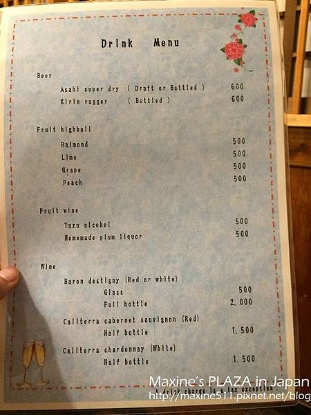 正餐用完後,工作人員會上甜點-藍莓布丁配水果。如果想喝酒或是汽水,可以另外單點。