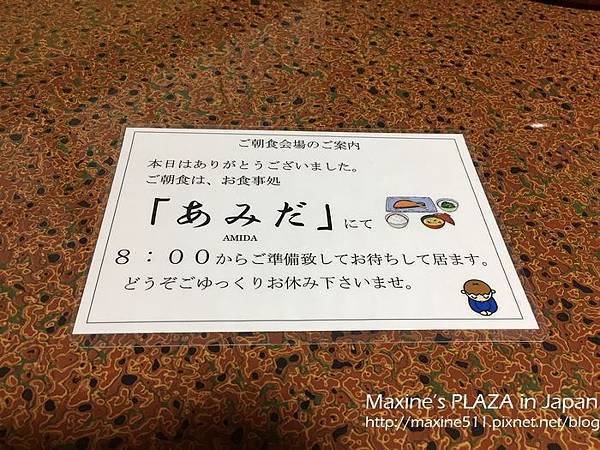 用完晚餐回到房間,工作人員已經把床鋪好了~並放了一張小卡片提醒早餐注意事項。