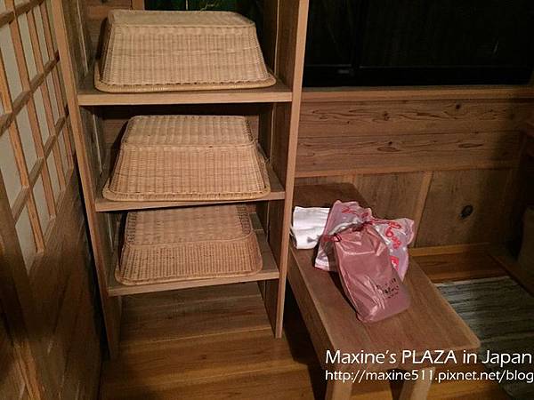 進來之後可以看到竹籃是放衣物用,如果是單純來泡湯的旅客,在入口處有置物櫃可以放貴重物品,鞋子也要放在外面。