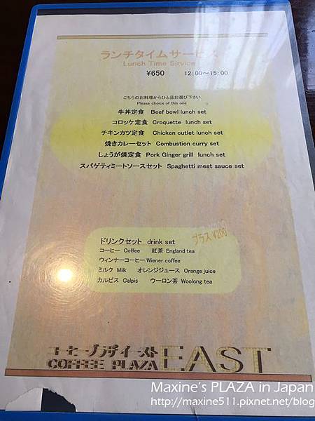 這間餐廳 Coffee Plaza East コーヒープラザイースト 距離車站約5分鐘路程,也是另一個用餐選擇。吃完下午茶回到車站拿行李上完廁所,車也來了,就搭上九州橫斷巴士往熊本方向前進囉!