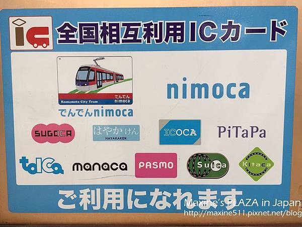 搭乘熊本市電可以付現、刷交通卡或買乘車卷,可以接受的卡片都在上圖中。
