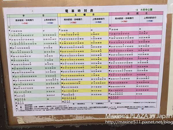 每一站的公佈欄都會有電車時刻表,這個時刻表還蠻精準的,或是用手機掃瞄QRcode確認電車狀況。