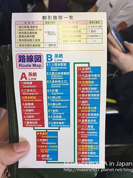 車上跟捷運一樣都有很多廣告文宣,搭車的時候可以研究一下打發時間,很多都是熊本美食店或是娛樂場所的廣告/介紹。