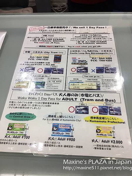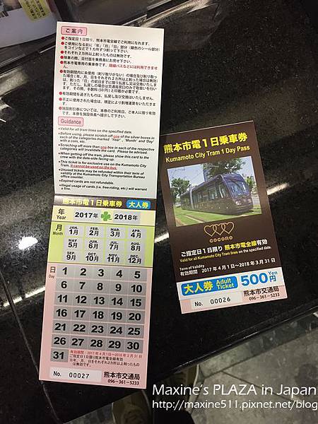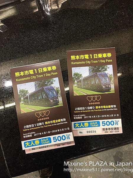 我的市電乘車券是到熊本車站裡面買的,一張500円。你可以購買巴士乘車卷或市電乘車卷,也可以購買兩種都能搭的一日券。
