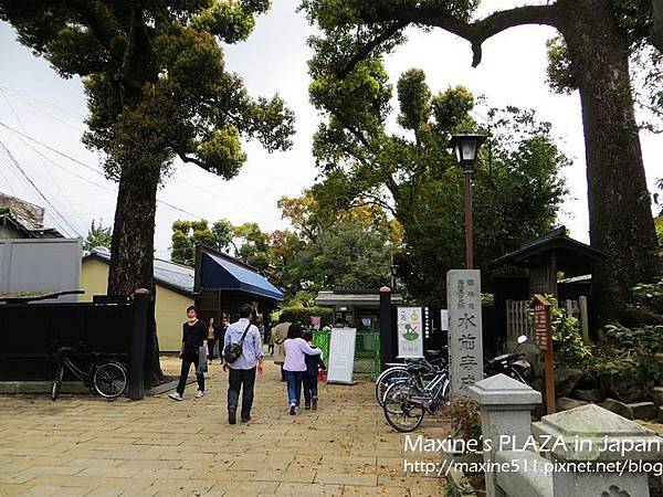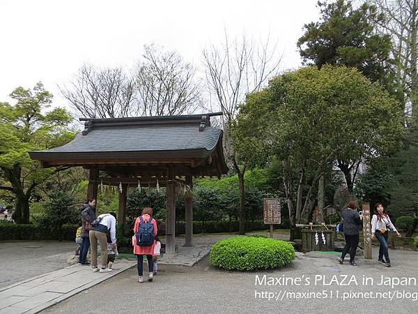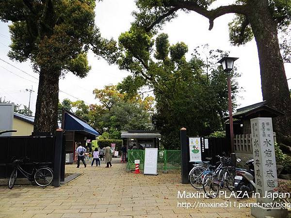 先在小橋上一覽庭園的景色後,往出水神社前進