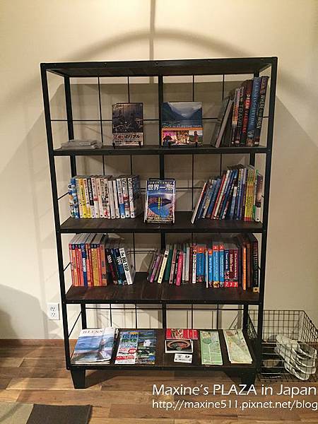 客廳還有一個書架放旅遊書跟觀光地圖。