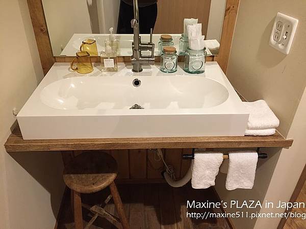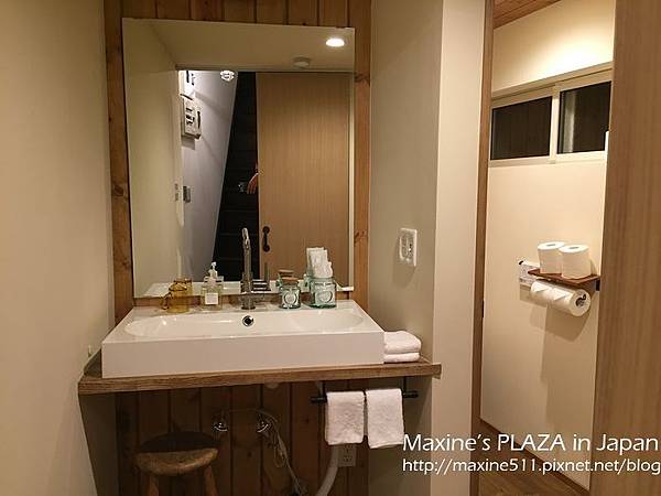從一樓上來後也有一個沙發可以看電視,房東也有提供毛巾跟盥洗用具。民宿提供的洗髮精跟沐浴乳我會再寫一篇介紹文,是用『MARKS&WEB』的產品,跟在金澤用到的一樣高級我很喜歡,重點是這個牌子我之後有在名古屋的百貨公司裡買到~灑花~
