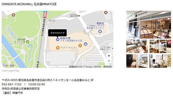總之,我請台灣的朋友打電話去OWNDAYS問,他們說如果確定眼鏡的螺絲裝不回去的話就是要重新配一個新的框。是的...你看圖片就知道我確定是要重新配一隻框了。我查了名古屋市區內有三間門市,都在AEON商場裡面,我去了離我比較近的AEON TOWN千種店。