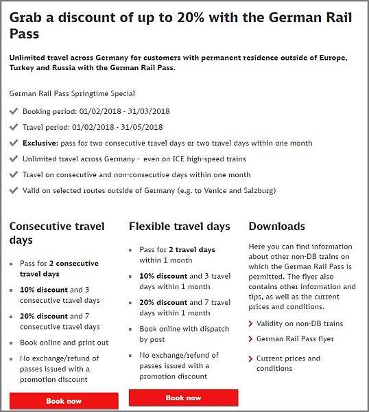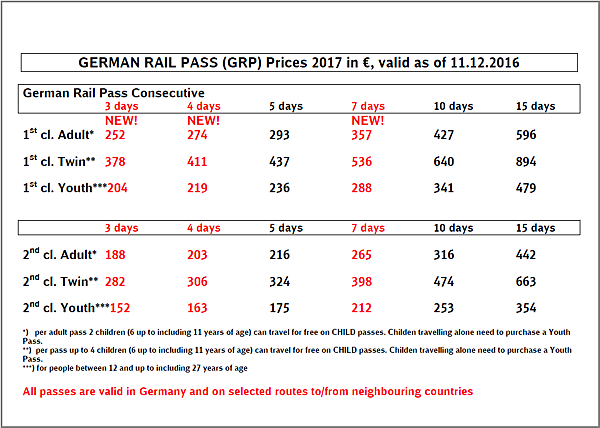 『德國火車通票 German Rail Pass』又稱德國鐵路通行證,它使用限制是限定居住在德國、土耳其、俄羅斯以外的國家的旅客使用。