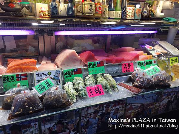 櫥窗裡擺滿了誘人的魚肉,顏色超美感覺就很好吃。日本運來的生蠔,一顆200元 (生吃) 。