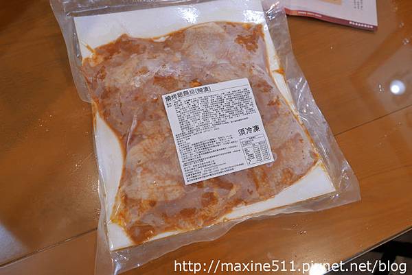 1公斤的醃漬雞腿排,背後有烹調的說明介紹。