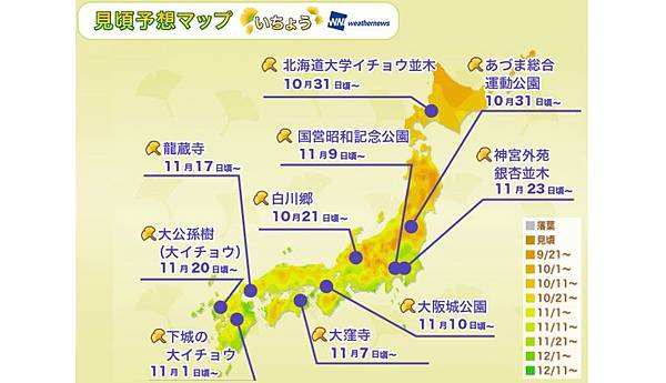 我的旅遊日期是11/15~11/20,11月中旬早上氣溫大約10~14度左右,雖然天氣冷不過風不大,銀杏還沒有全部轉黃。