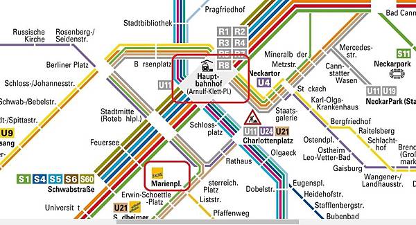 一到車站後就先直奔民宿,最靠近民宿的地鐵站是「 U34 (往 Südheimer Platz) 的 Marienplatz」,我必須說雖然斯圖加特的地鐵線算多,但是我覺得好複雜,地鐵交匯處跟轉乘處真的很混亂,我在想這有可能就是民宿的房東一直叫我下載斯圖加特地鐵APP的原因...。