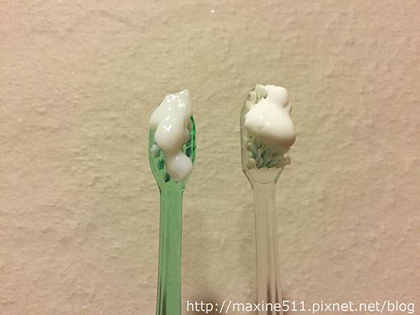 (為了拍照所以擠得比較多,注意這款牙膏只需要擠約一顆珍珠大小的量就可以囉~)
