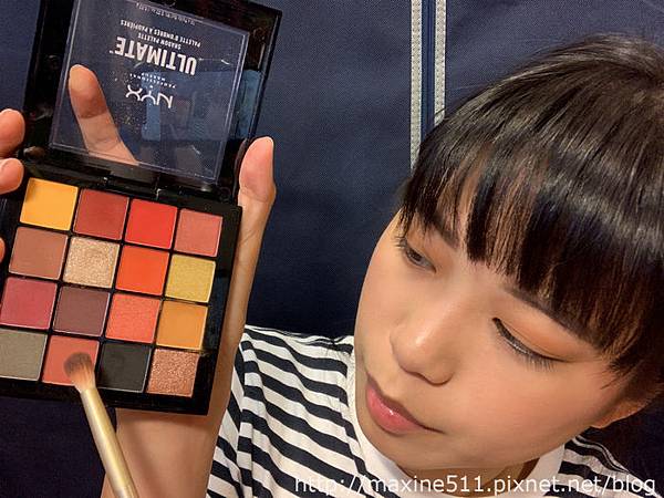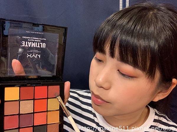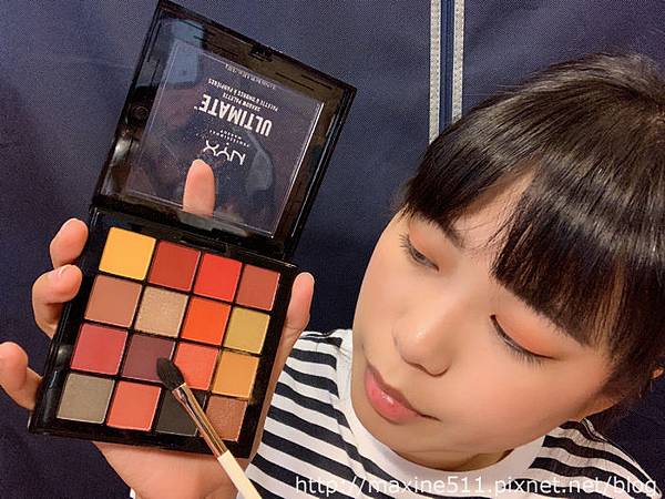 這次眼妝產品使用NYX專業後台百變玩味十六色眼影盤。這盤眼影盤是霧光跟金屬光混合,顏色部分我覺得偏暖色調,非常適合夏日妝容。