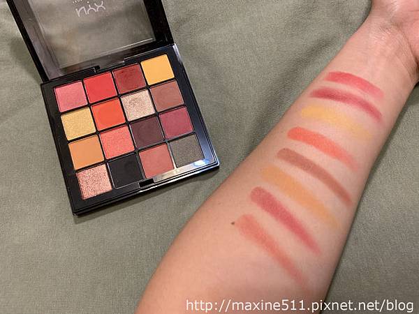NYX的16色眼影盤真的很美,我非常喜歡,顏色飽和顯色度高,使用刷具時輕輕沾取會比較好暈染開來。如果你正在找多色眼影盤可以看看NYX的16色眼影盤,顏色好搭配也好駕馭,大小方便攜帶,如果出門旅遊帶一盤就可以有好多種不同的眼妝。