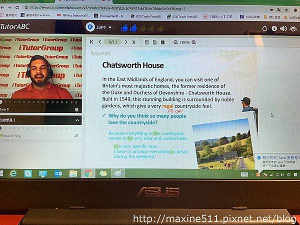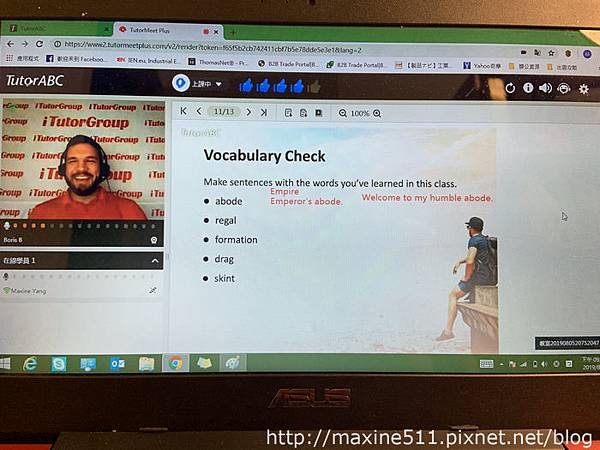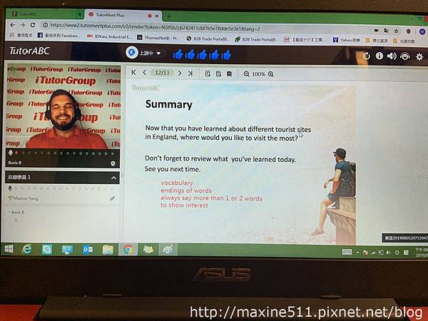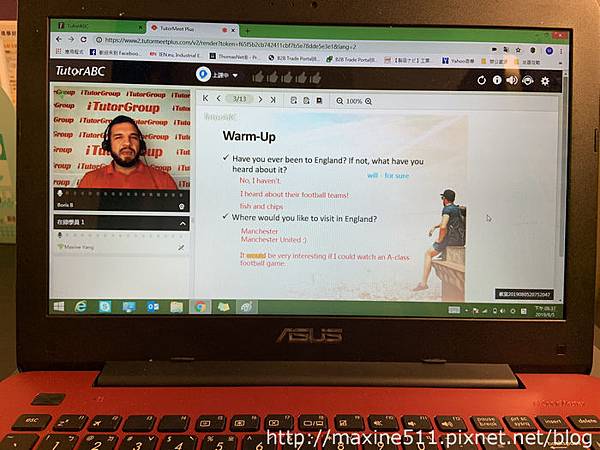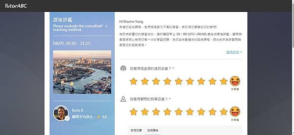 準點上課時,老師會先自我介紹。我很開心我遇到的老師Boris是一位非常親切的老師。TutorABC擁有3萬名外語師資,來自全球80個國家,可以練練不同口音的聽力。我雖然沒有特別問Boris老師從哪裡來,不過感覺應該也是英國的某個地方。