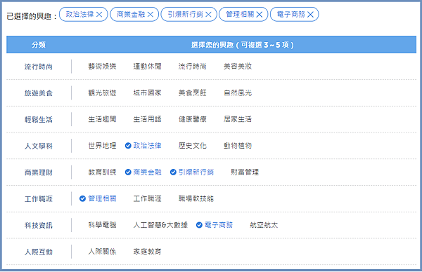 每個學員都有自己的學員後台,可以在DCGS偏好設定選擇你最想加強的項目。