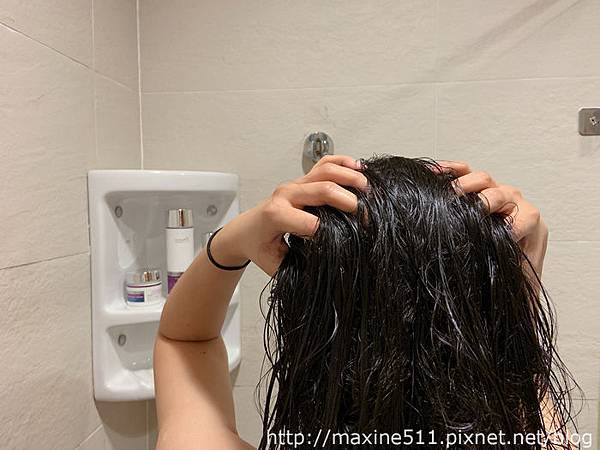 按摩約1分鐘後用水洗淨後,吹乾頭髮。