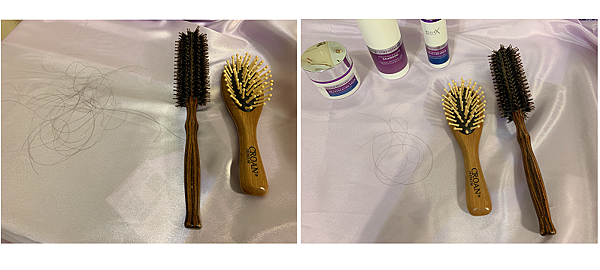 連續使用下來覺得在吹乾頭髮的時候,梳頭髮導致的斷髮聲 (啪一聲) 會減少,梳子上的頭髮也變少了,只剩零星幾根掉在地板上的頭髮,這一部分很有感。自己拍照看頭頂髮量的時候也覺得看起來濃密許多,灑花灑花。