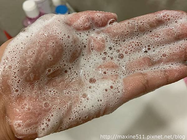 這個洗面乳起泡快速,泡沫也很綿密。洗面乳不會咬皮膚,洗完還保持基本的保濕感,不乾澀緊繃。重點是洗面乳的味道是我很喜歡的那種飯店會放在洗手檯用的小塊圓形肥皂的味道,大推~