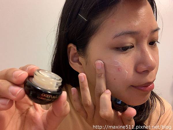 取適量輕輕將乳霜在臉部抹勻,雙手輕輕按壓整臉。這一款乳霜涮質地比較濃稠滋潤的霜,但是抹勻後也不會太厚重,所以我建議是先塗一點點,等待吸收後如果還有哪邊覺得需要加強在抹一些。晚霜有高濃度的肌膚延命安定因子,在夜間修復日間受損細胞,重塑肌膚完美質感。就像是給肌膚吃了保健品,讓膚況提升同時抗老。