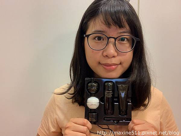 收到試用套組後當天就拿來用了,真的是很棒的抗老產品,明顯感受的深層的保濕滋潤感。慢慢開始使用抗老產品後,發現補水、撫平細紋跟好的修復能力是很重要的,這樣才能穩定膚況維持好膚質。味道部分則是有淡淡的花卉香氣,可以享受保養的過程。使用幾天下來除了突然冒出的生理痘,肌膚沒有其他狀況,上妝後也能保持不脫屑脫皮。倒是眼霜的部分很有感,上眼周遮瑕的時候很好上,晚上完成保養程序後也可以感覺到眼周肌膚彈潤彈潤的。如果有興趣的話一定要趕快去靠櫃實際使用看看,說不定可以趁著百貨周年慶檔期買到不錯的組合唷!