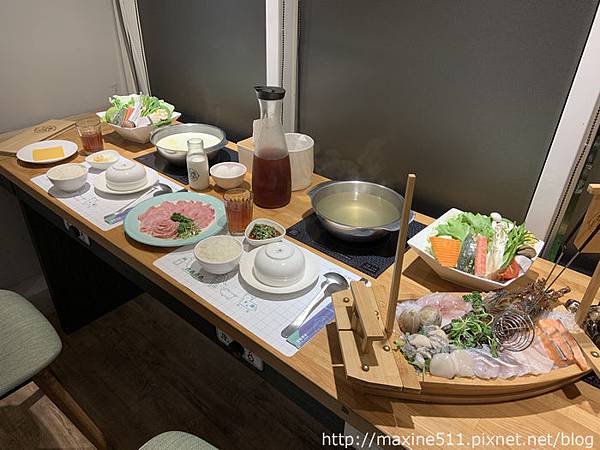 我跟朋友點了一份「總經理海陸套餐」跟「伊比利松阪豬套餐」,湯底則選擇一個原味昆布湯底跟一個起司牛奶湯底。