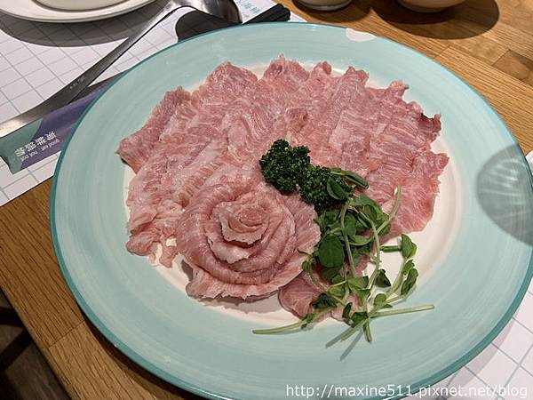 故意鍋物的海鮮品質好,肉的品質也不馬虎喔!松阪豬肉油脂分佈均勻,肉質扎實,煮過之後感覺脆脆的很Q彈。這個松阪豬100分!