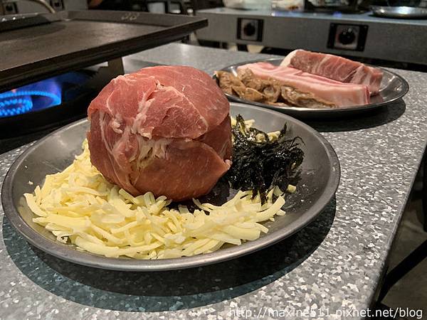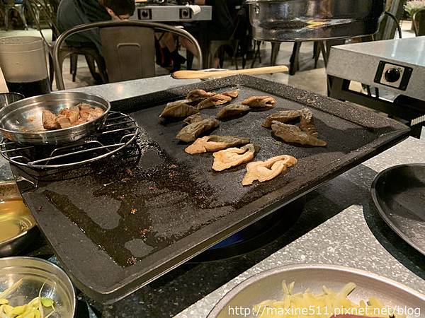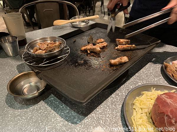 肉跟大腸都烤完之後,店員會換烤盤,要來料理最後一道泡菜肉彈。